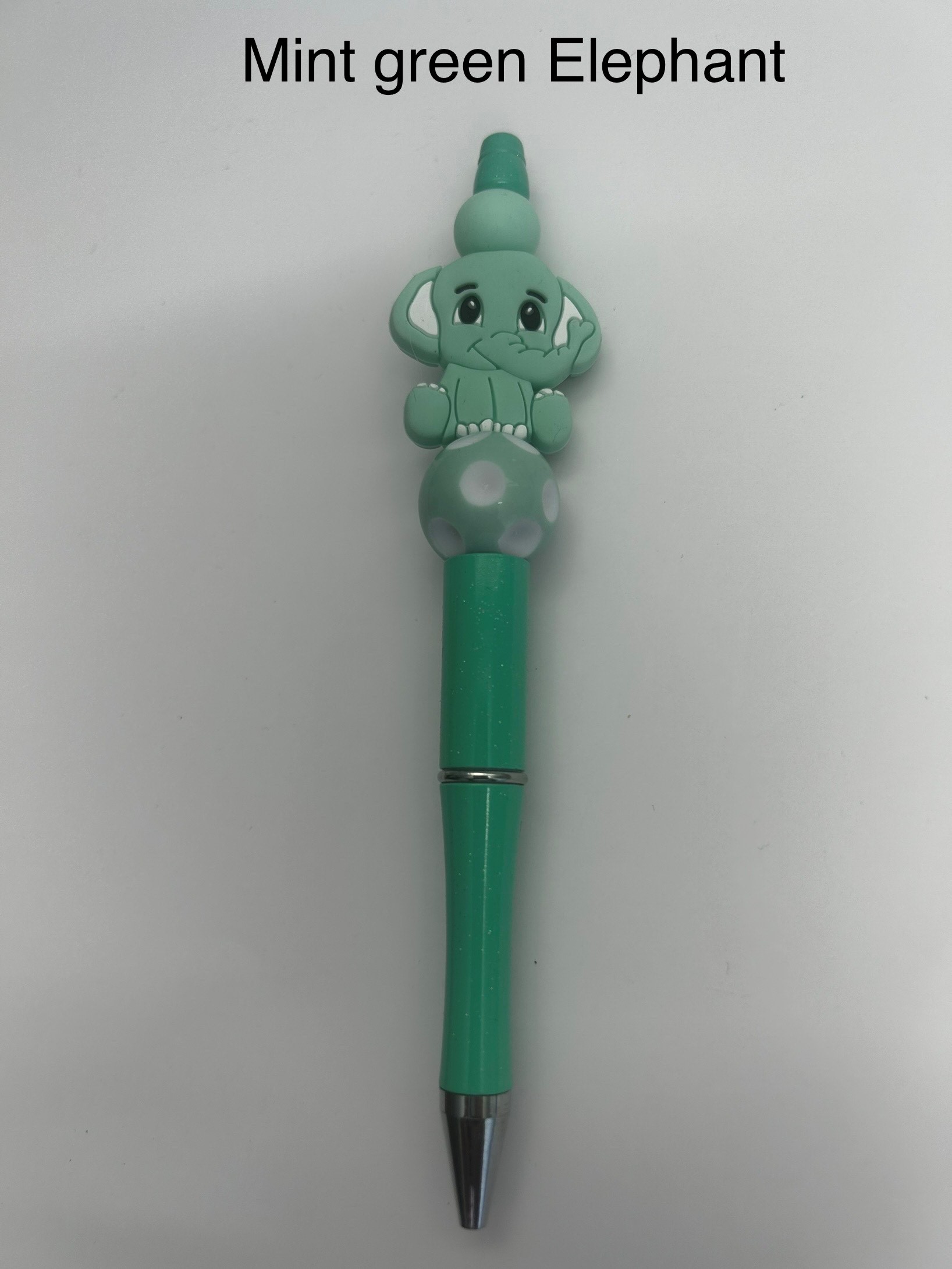 This pen comes in a light green pen with a polka dot bead and a cute elephant.