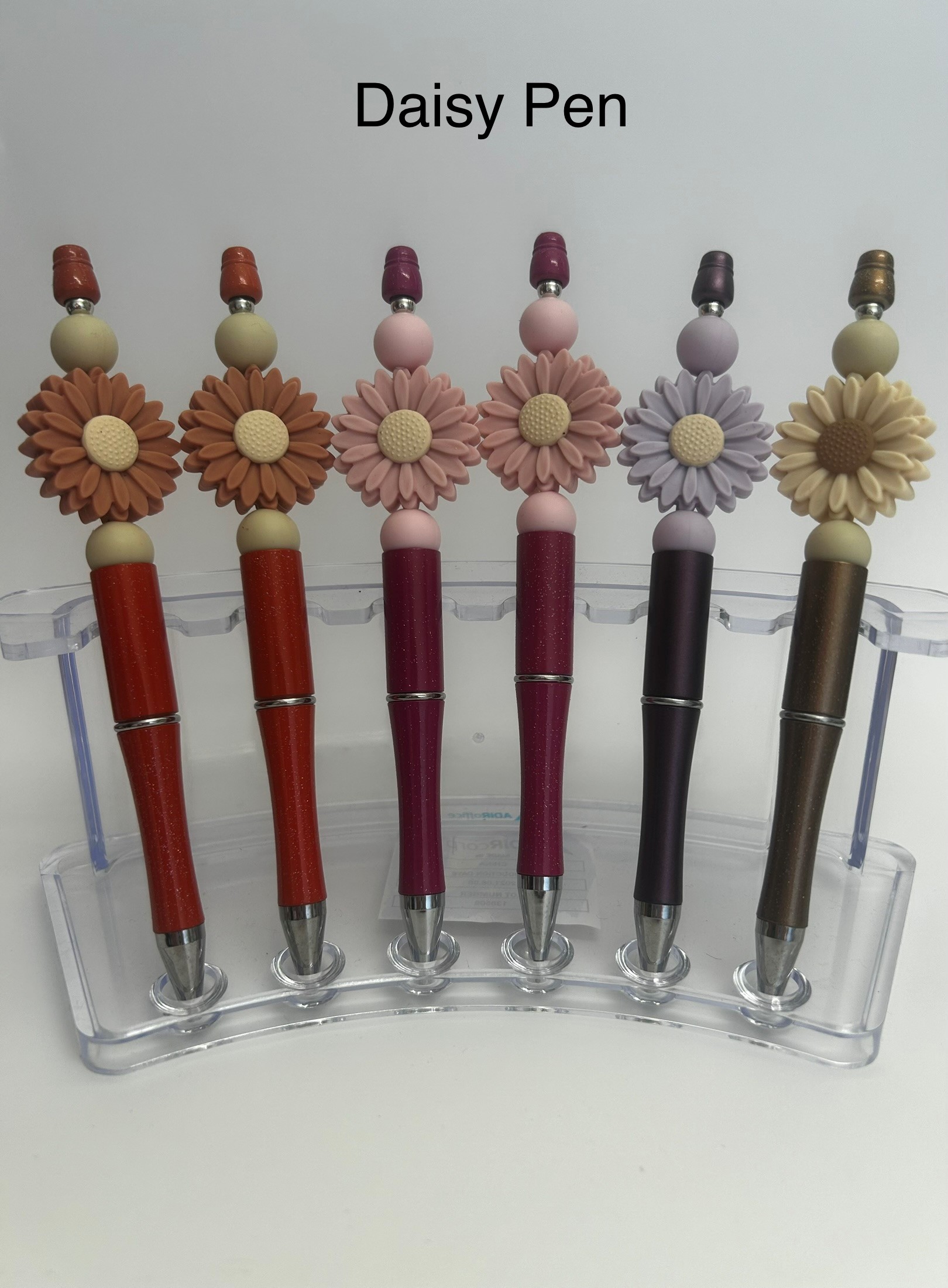 These pens have daisy with smaller beads either side. Black ink only and comes with a free refill.