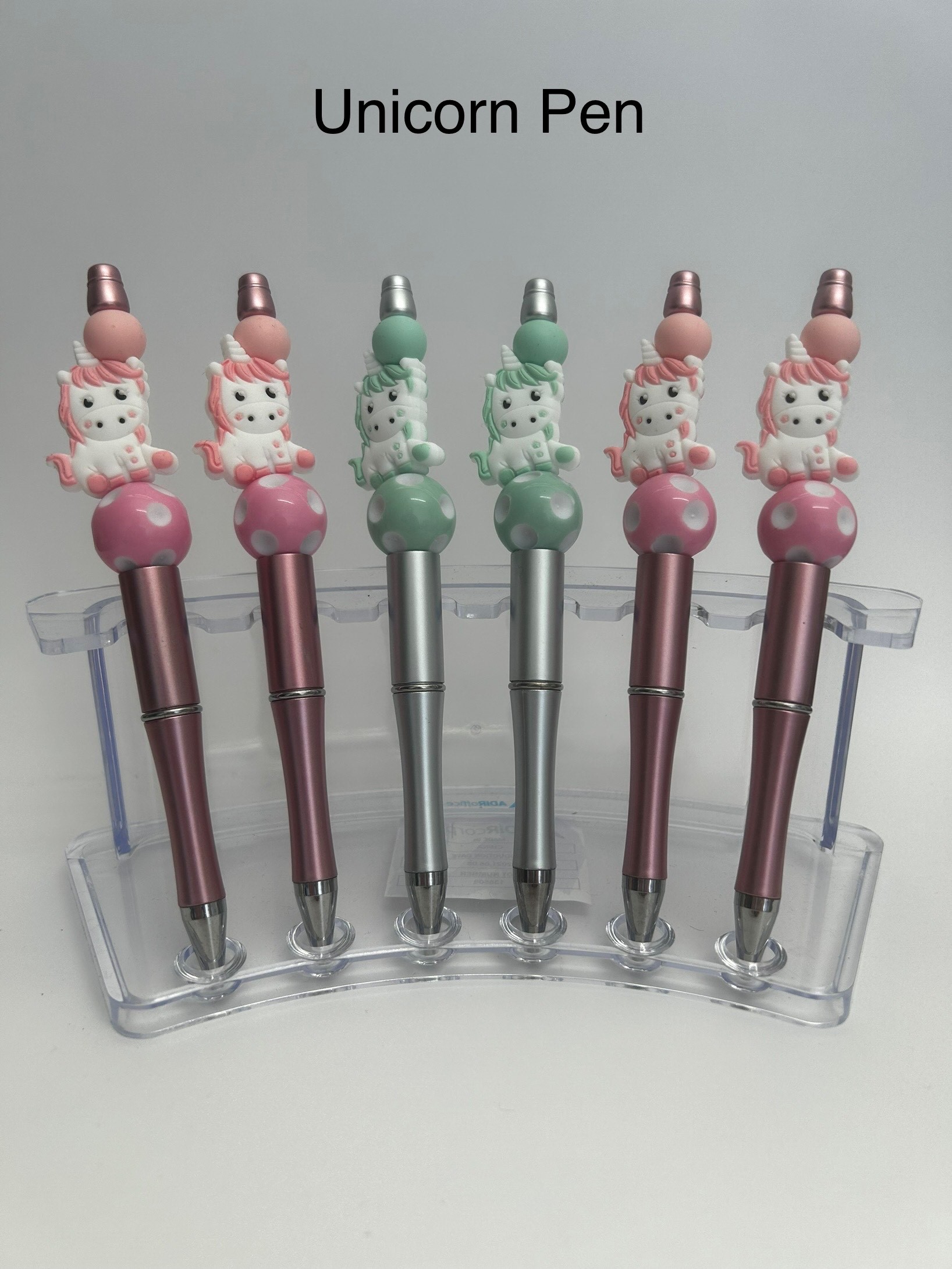 These pens have a polka dot beat with a unicorn sitting on top. Black ink only and comes with a free refill.